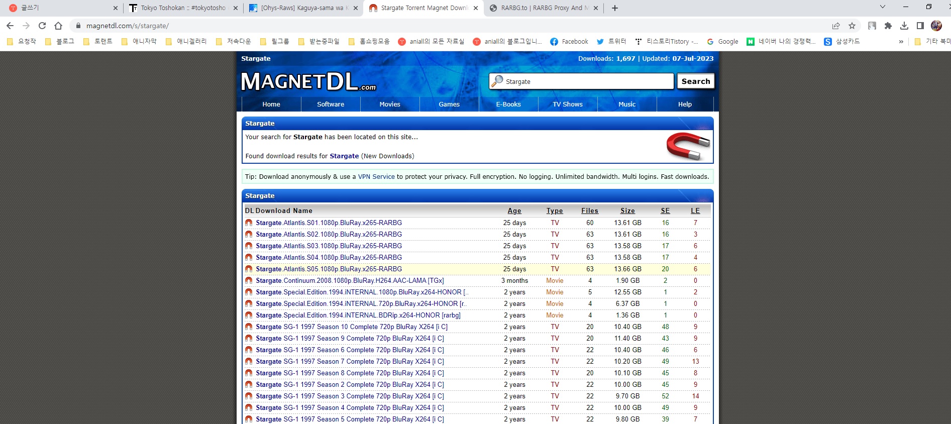 위 이미지처럼 마그넷을 공유하는 싸이트인데요 영문 싸이트라 검색창에다가 영문 제목을 검색 해야 합니다